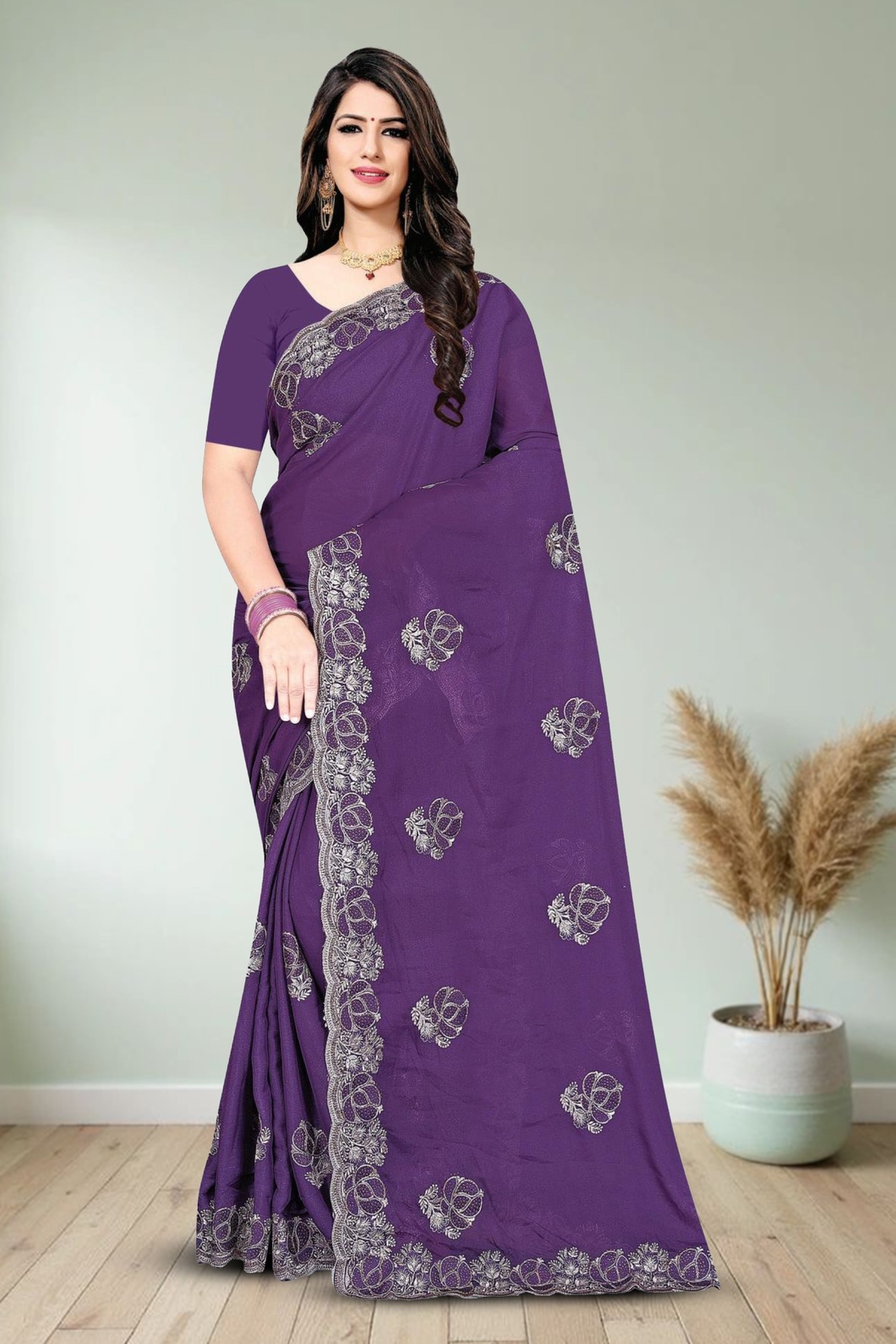 FANCY DYED EMBROIDERY WORK SAREE WITH UN-STITCHED BLOUSE (106)