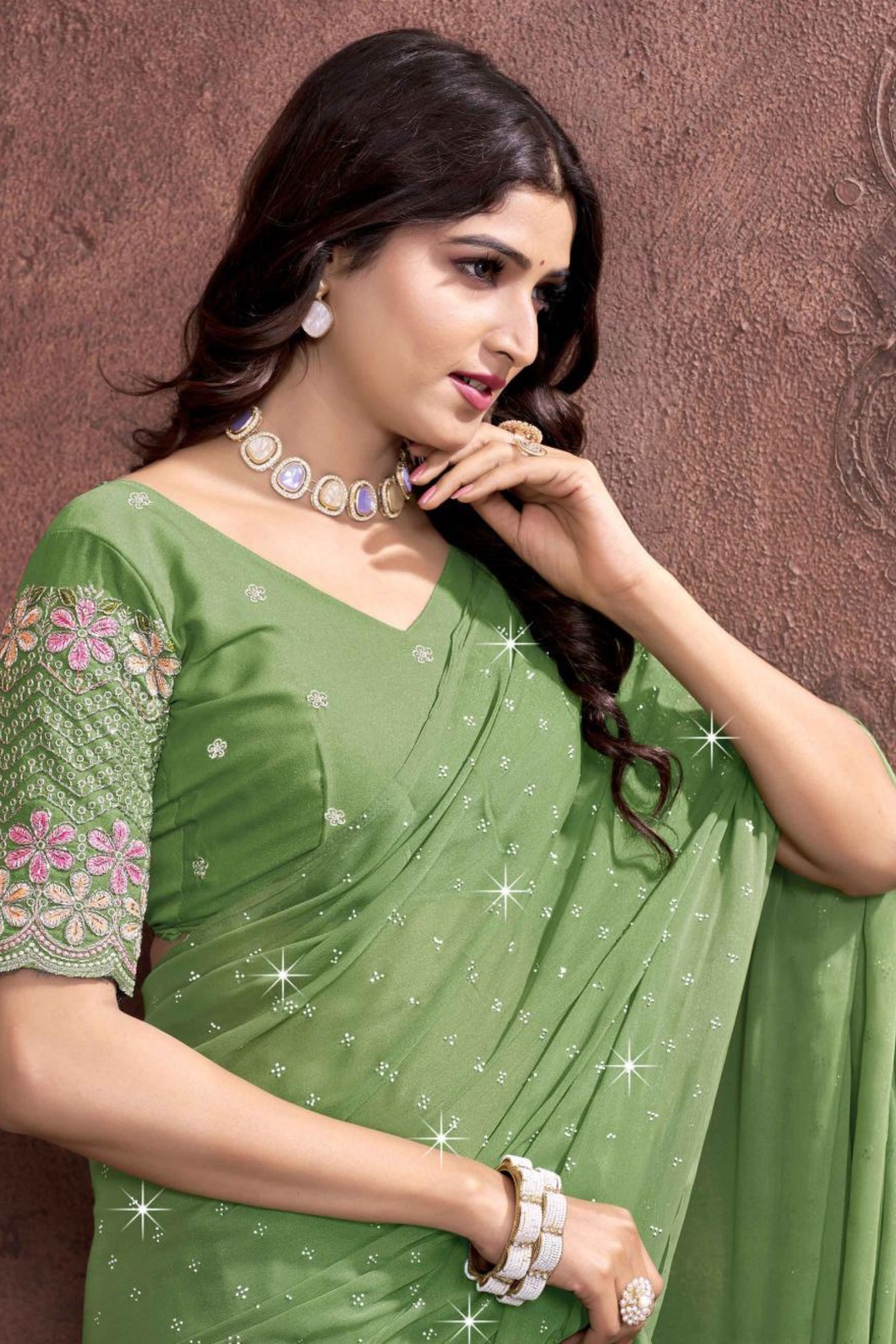 DYED EMBROIDERY SAREE WITH FANCY UN-STITCHED BLOUSE (243)