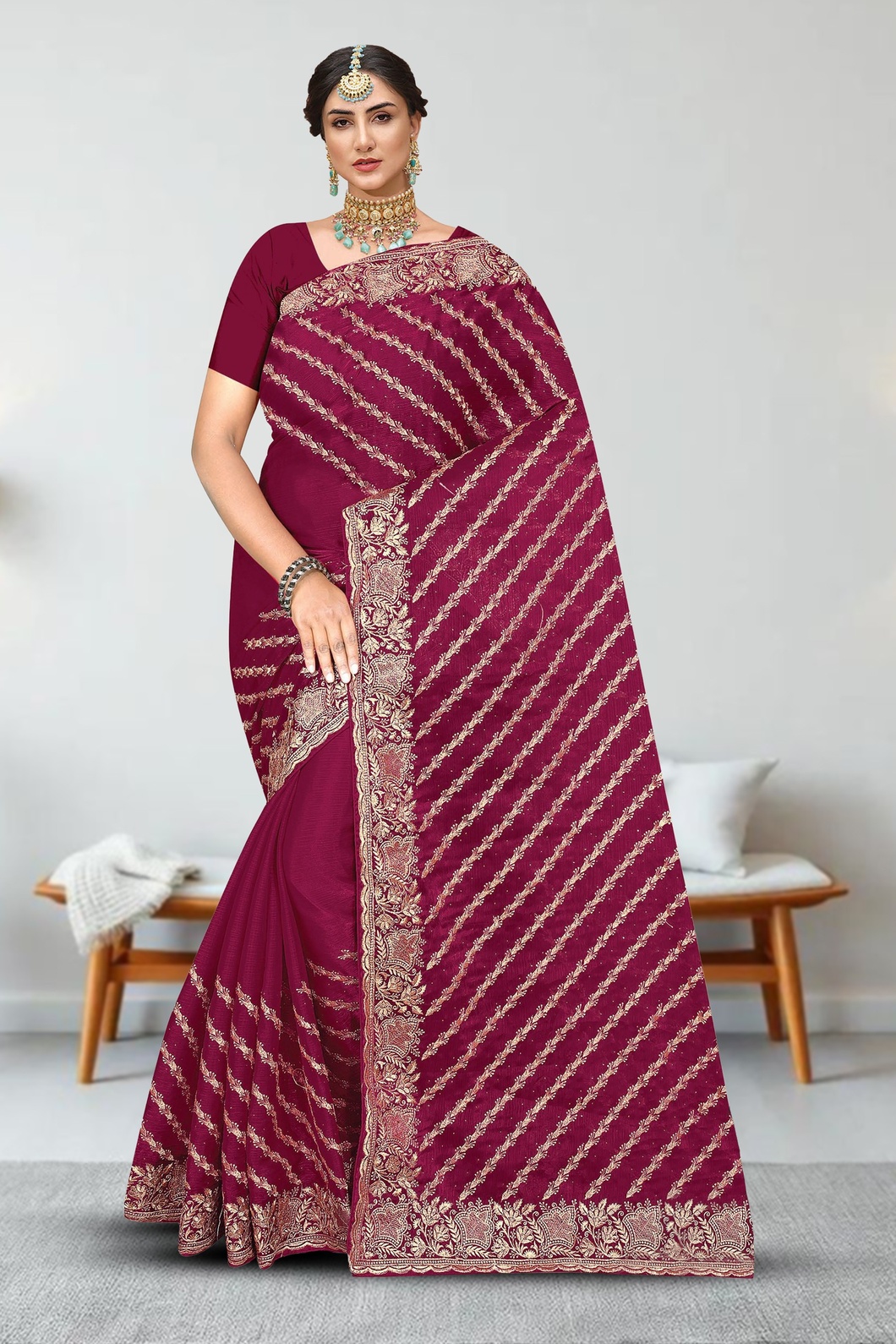 This dyed embroidery work saree is made from premium fancy silk fabric, offering a rich and elegant appearance. It comes with a matching unstitched blouse piece and measures 6.30 meters in length. Suitable for weddings, festive occasions, and parties. Packed securely in plastic bag packaging for safe storage and convenient handling.