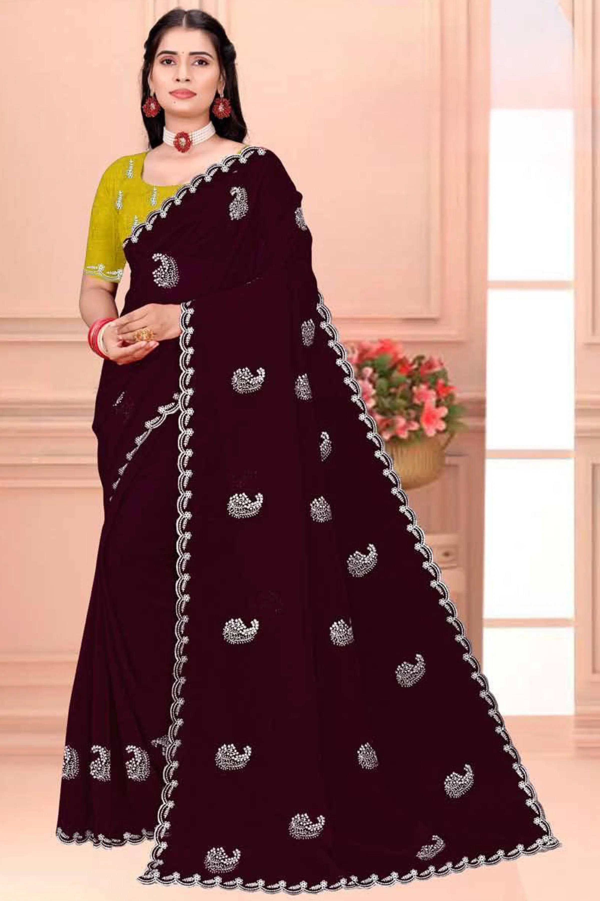 Elegant dyed plain saree with a smooth and graceful finish for a classic look.