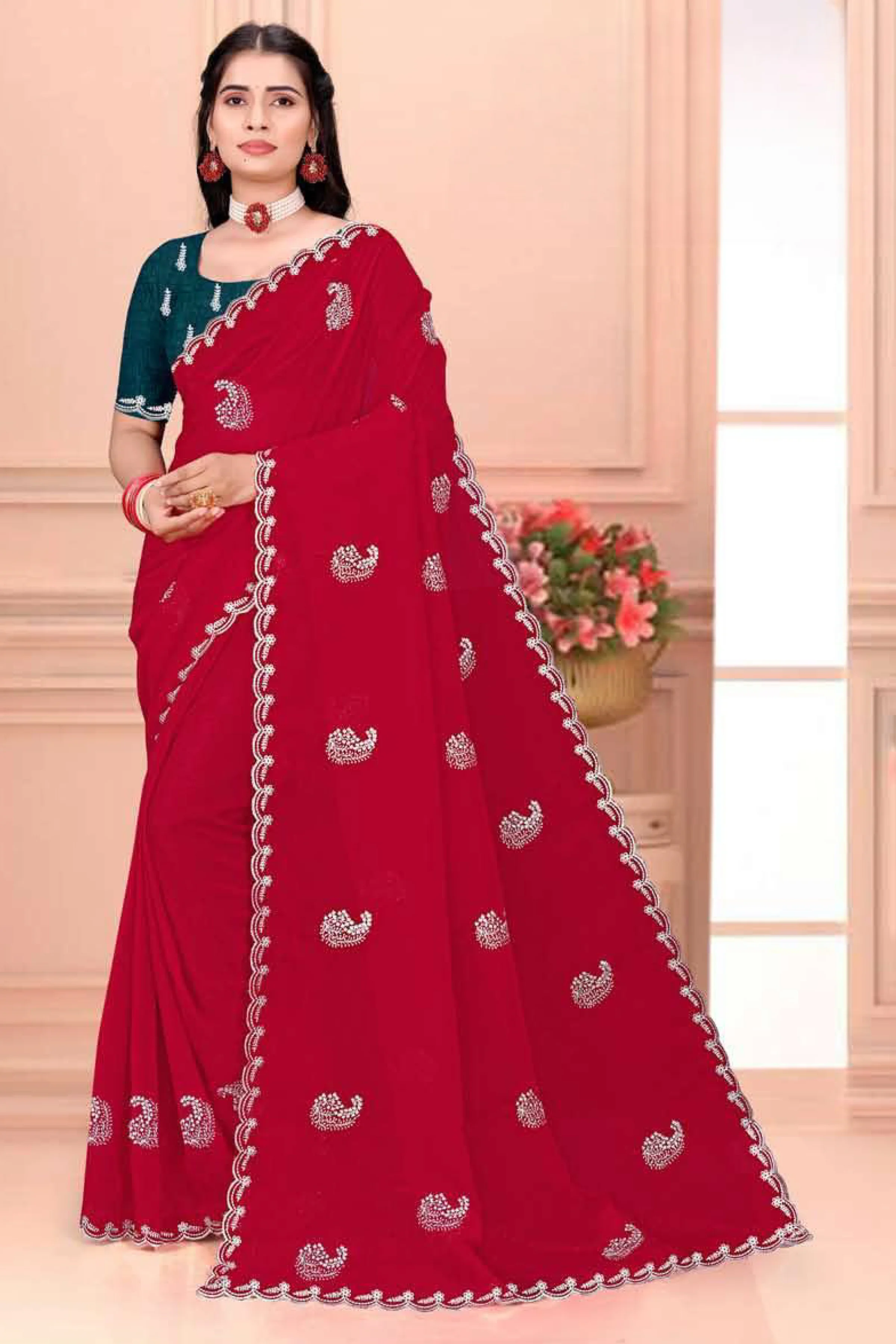 DYDE PLAIN SAREE WITH FANCY UN-STITCHED BLOUSE (271)