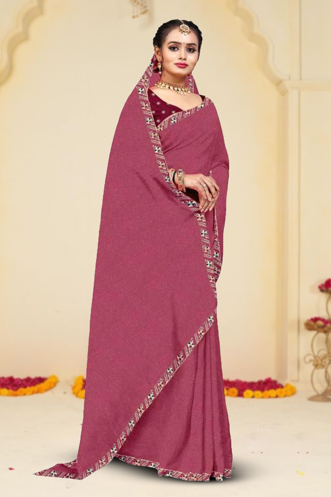 DYED EMBROIDERY WORK SAREE WITH UN-STITCHED BLOUSE (317)
