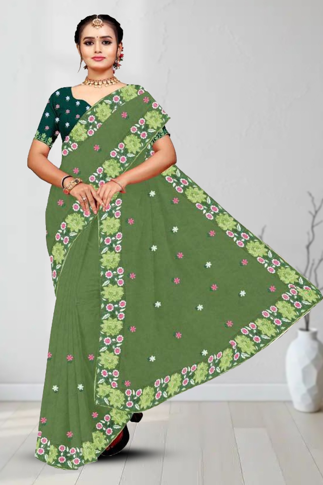 DYDE EMBROIDARY SAREE WITH FANCY & UN-STITCHED BLOUSE (313)