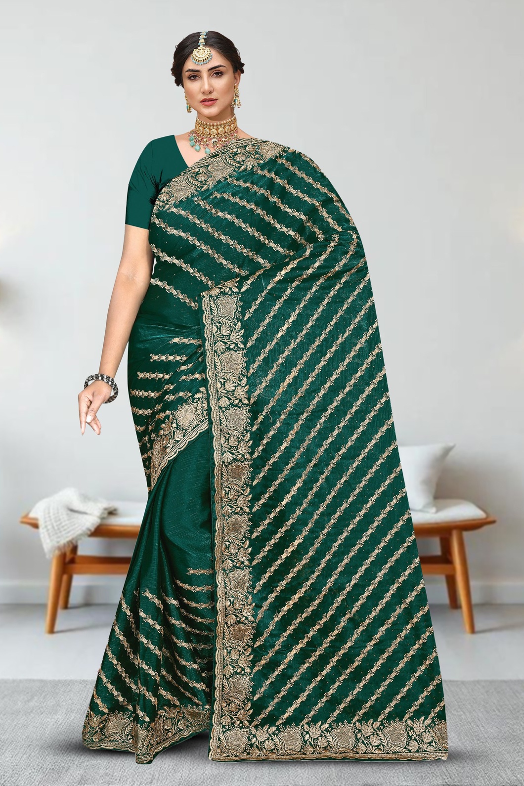 This dyed embroidery work saree is made from premium fancy silk fabric, offering a rich and elegant appearance. It comes with a matching unstitched blouse piece and measures 6.30 meters in length. Suitable for weddings, festive occasions, and parties. Packed securely in plastic bag packaging for safe storage and convenient handling.