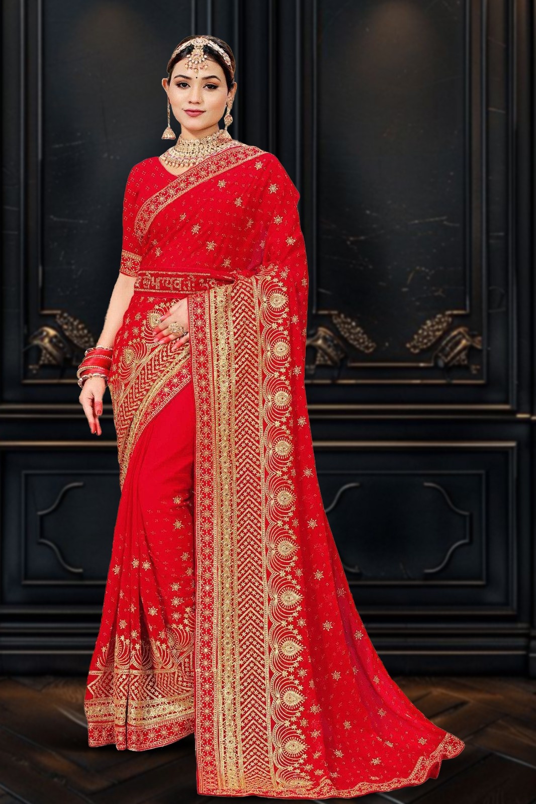 This fancy embroidery work saree is crafted from premium 60 GM blooming fabric, offering an elegant and stylish look. The saree comes with a matching unstitched blouse piece and measures 6.30 meters in length. Perfect for weddings, parties, and festive occasions. Packed carefully in premium box packaging for safe delivery.