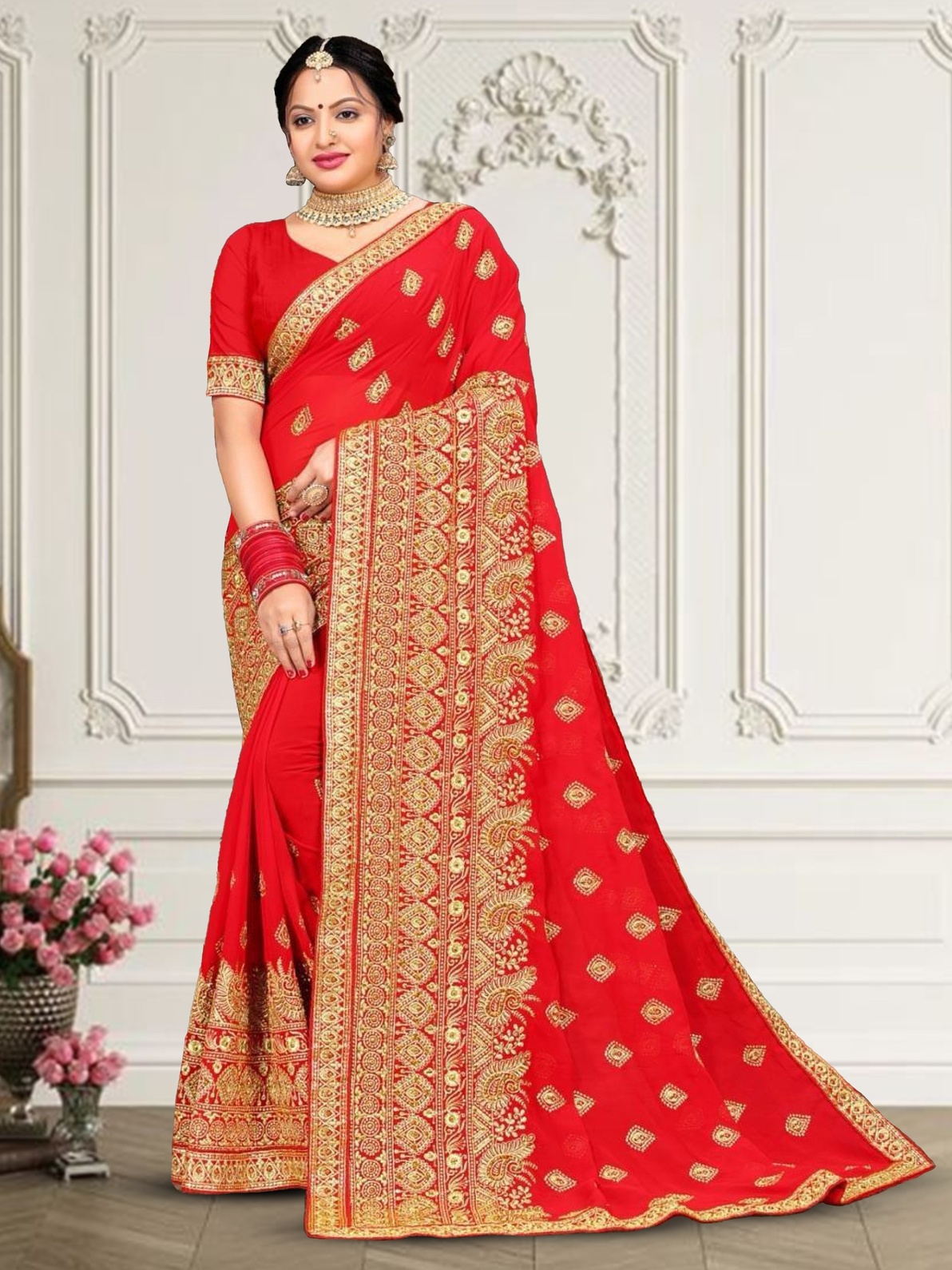 This dyed embroidery saree is made from premium 60 GM georgette fabric, giving it a graceful and elegant look. It comes with a matching unstitched blouse piece and has a total length of 6.30 meters. Perfect for weddings, parties, and festive occasions. Packed safely in premium box packaging for protection.