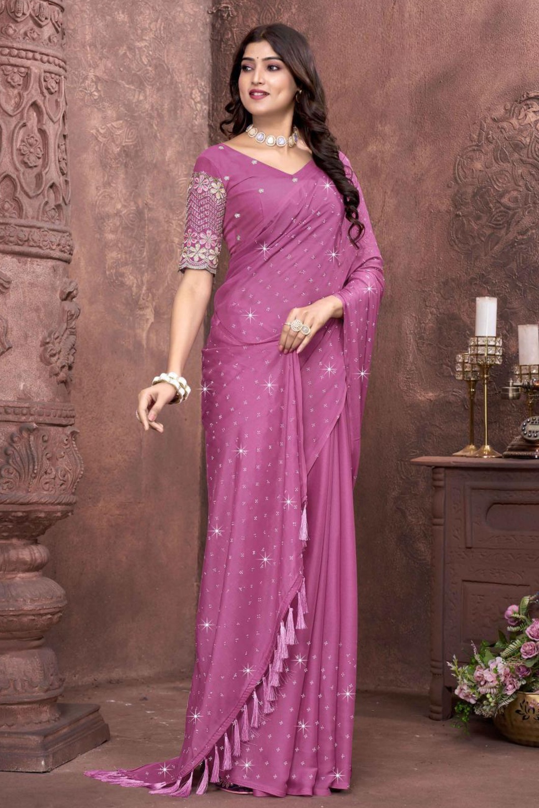 DYED EMBROIDERY SAREE WITH FANCY UN-STITCHED BLOUSE (245)