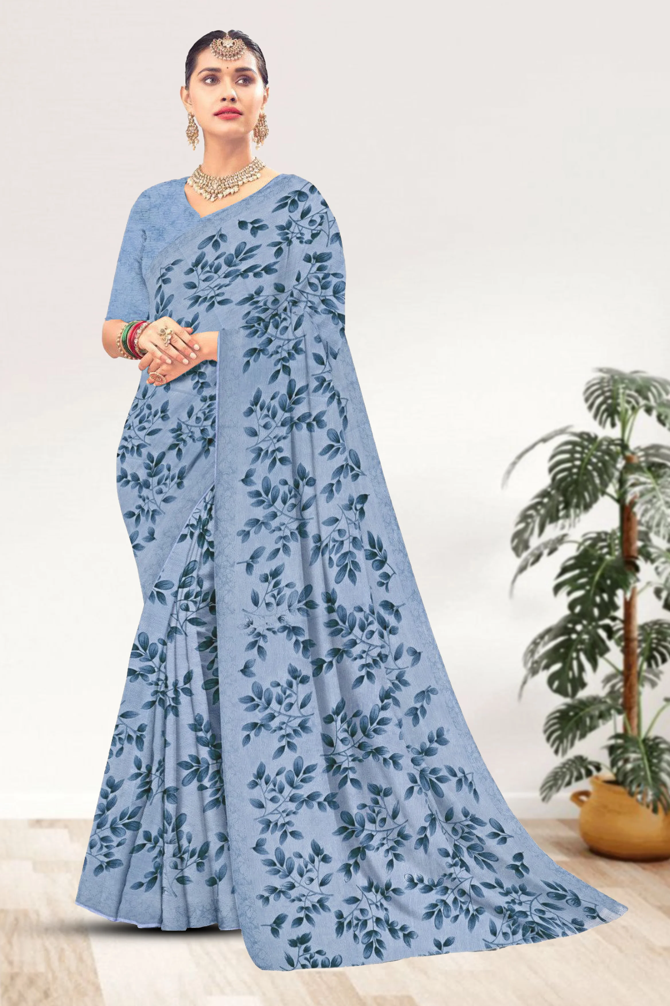 Lightweight chiffon saree with elegant loose printed design and a soft flowing drape.