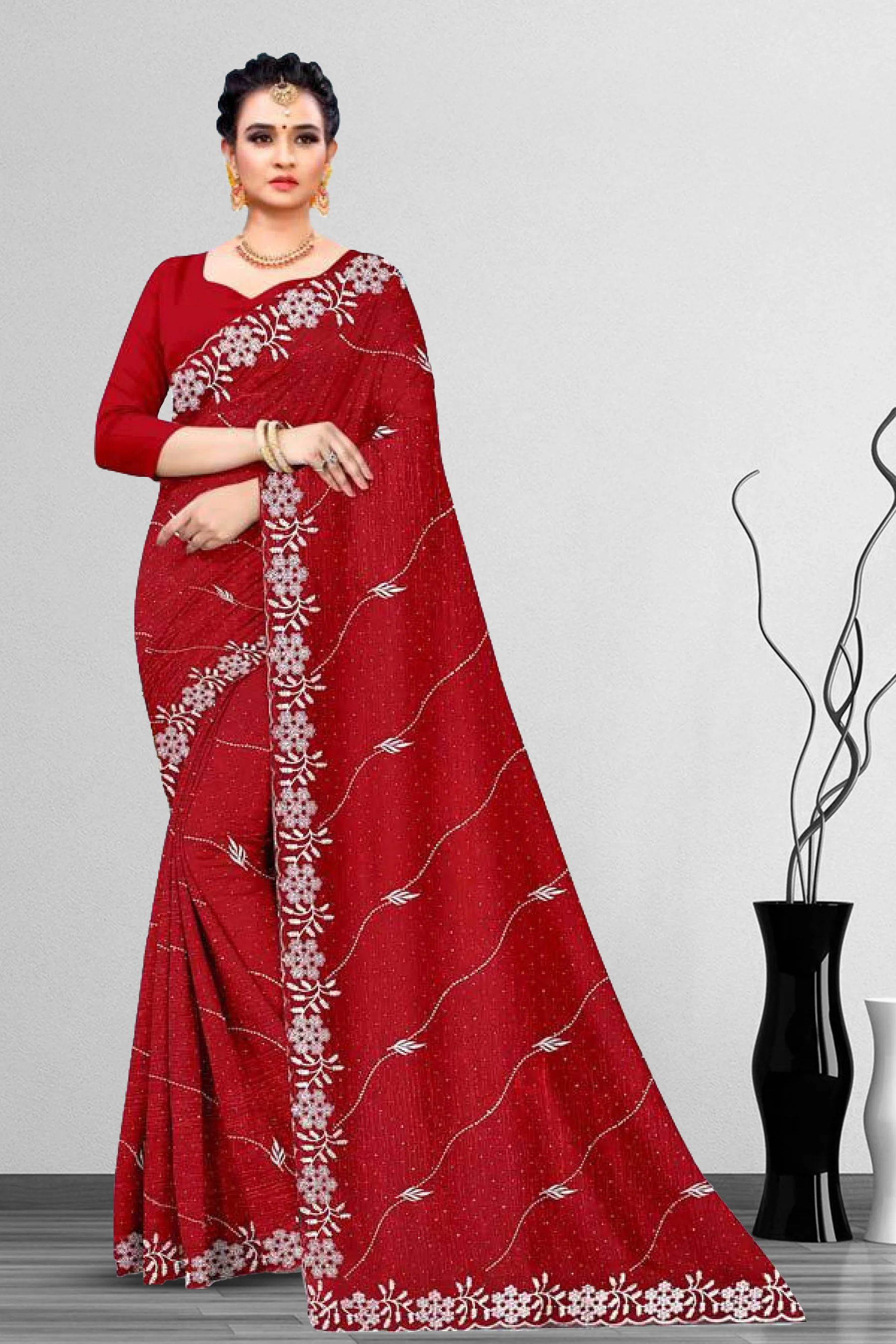 Elegant dyed embroidery saree crafted with intricate thread work for a rich and graceful look.