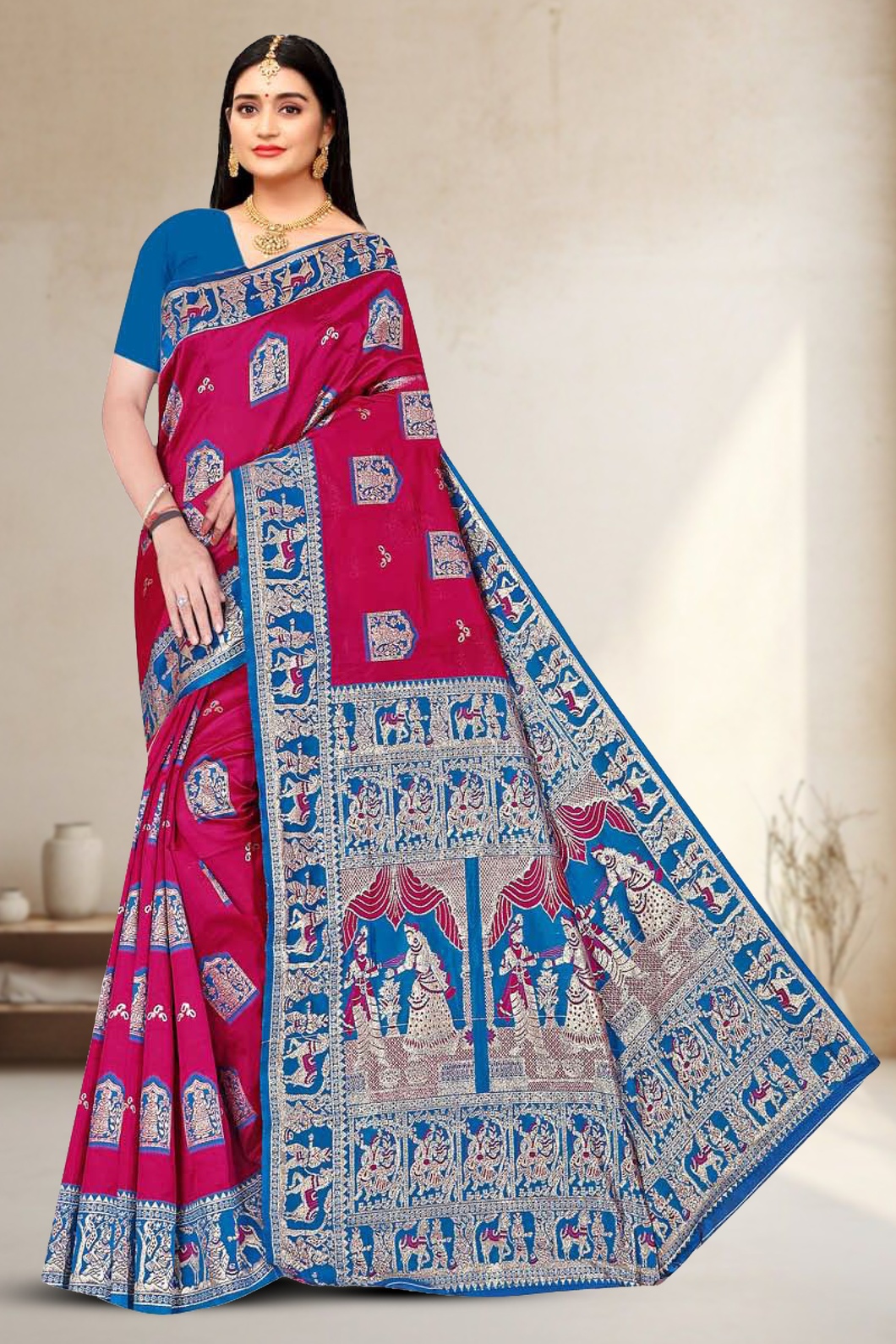 This repair jacquard silk saree is crafted from premium silk fabric, offering a rich and elegant traditional look. It comes with a matching unstitched blouse piece and measures 6.20 meters in length. Suitable for weddings, festive occasions, and parties. Packed securely in plastic bag packaging for safe storage, protection, and handling.