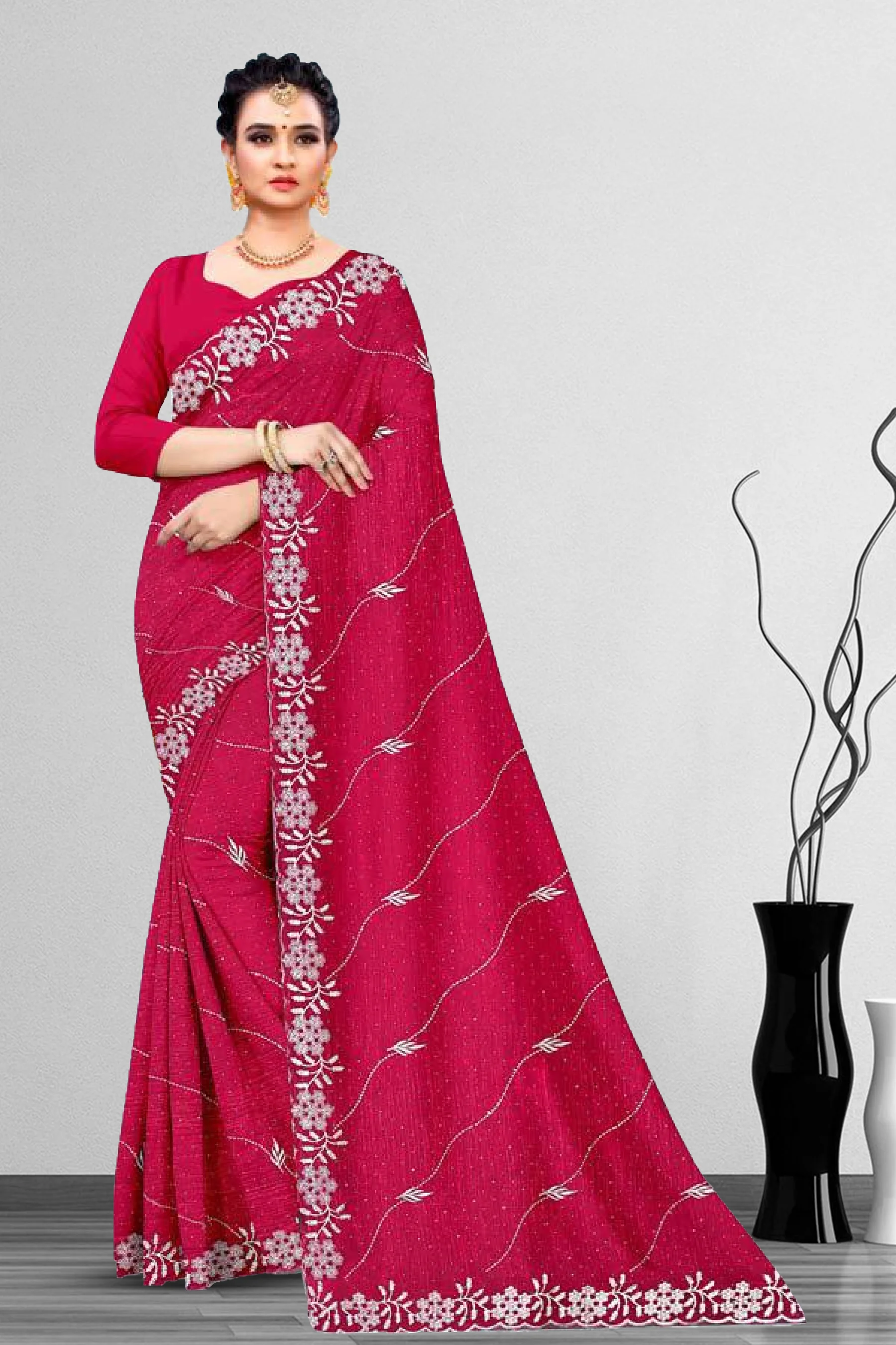 Elegant dyed embroidery saree crafted with intricate thread work for a rich and graceful look.