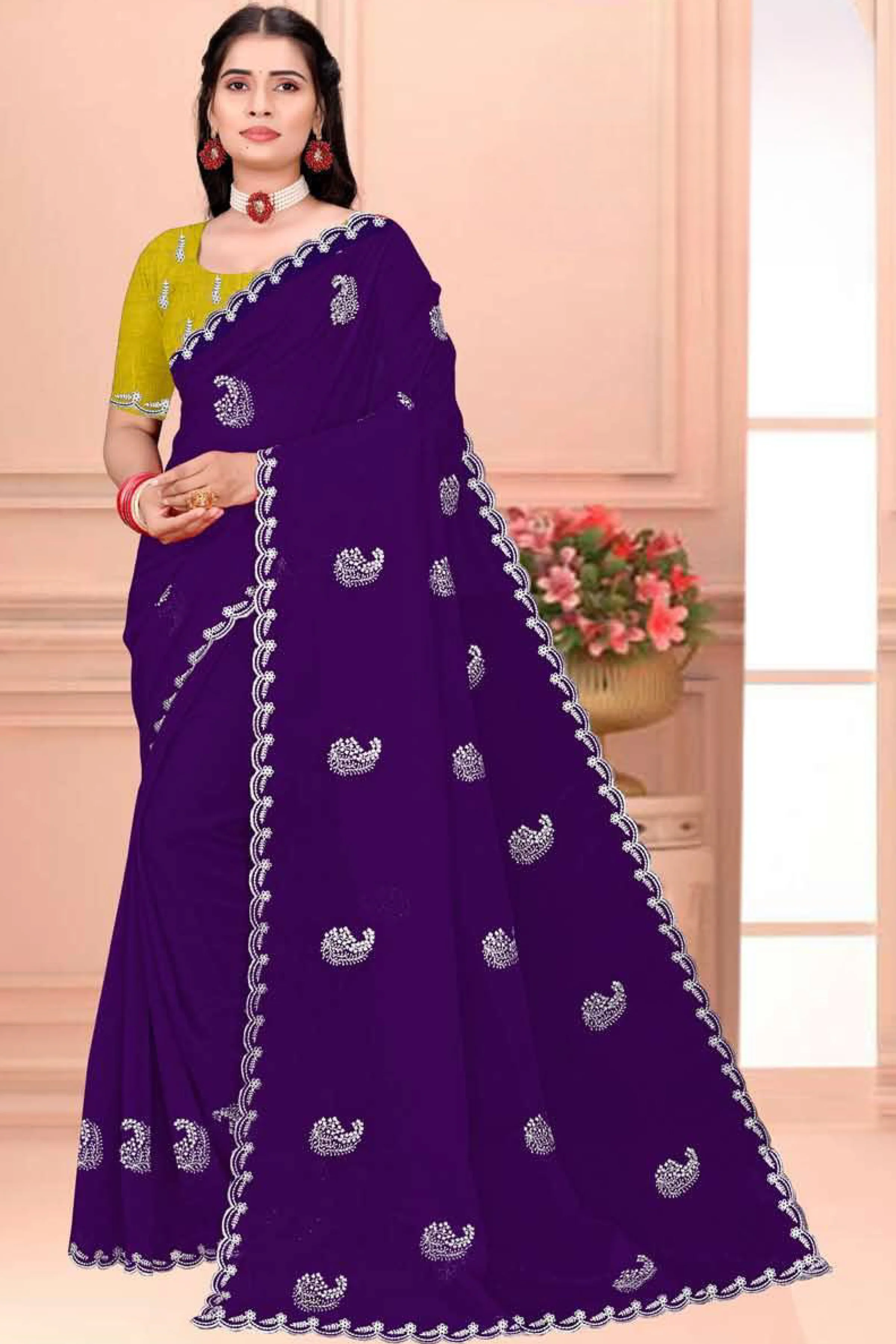 Elegant dyed plain saree with a smooth and graceful finish for a classic look.
