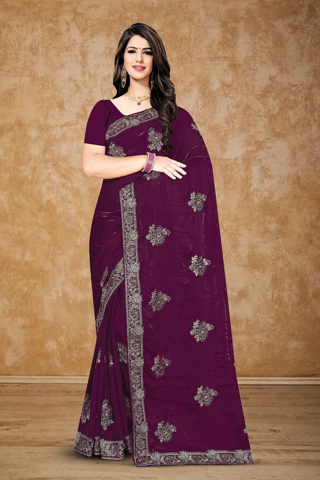 This dyed embroidery work saree is crafted from premium fancy fabric, offering an elegant and stylish appearance. It includes a matching unstitched blouse piece and measures 6.30 meters in length. Suitable for weddings, parties, and festive occasions. Packed securely in plastic bag packaging to ensure safe storage, handling, and convenient delivery.