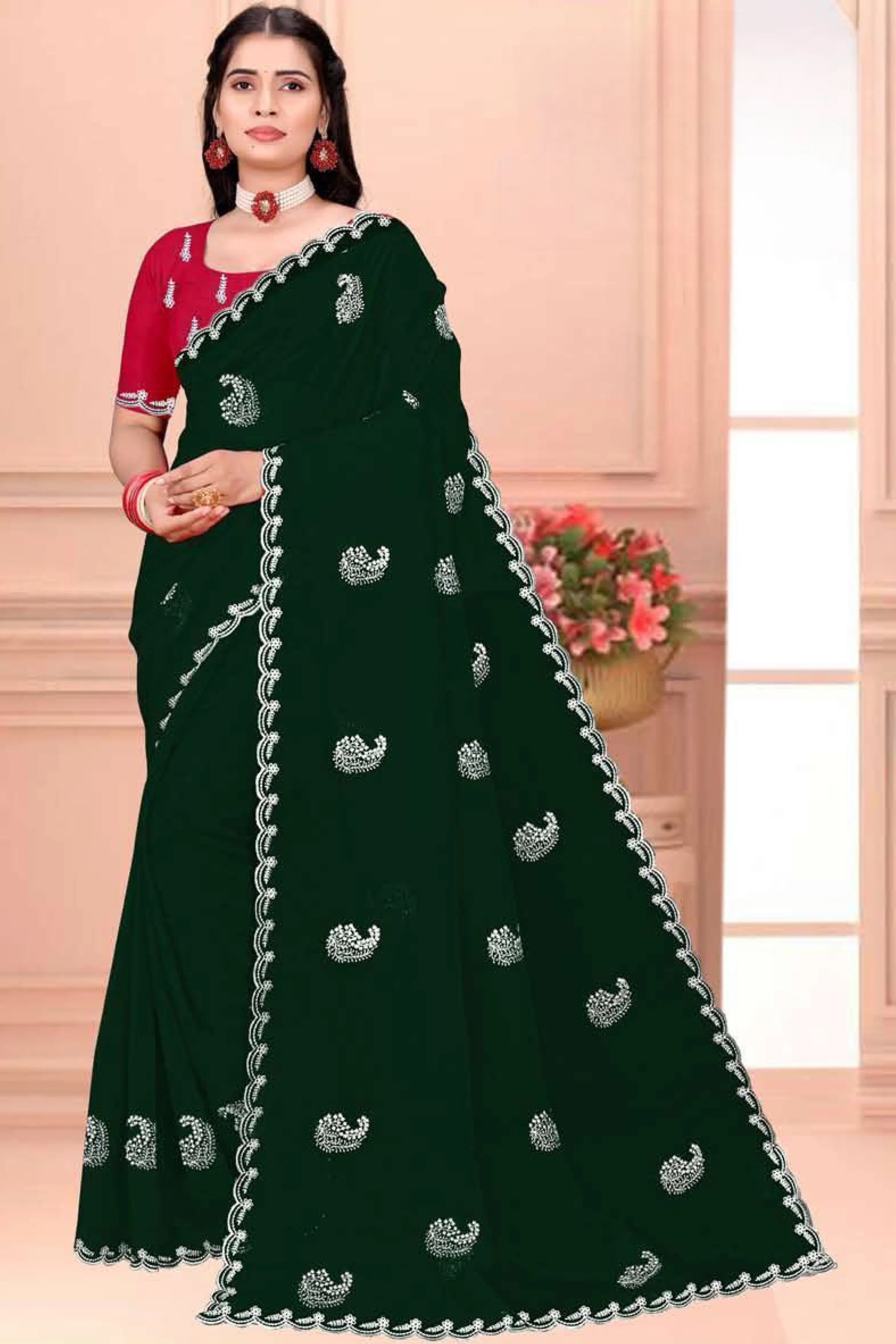 DYDE PLAIN SAREE WITH FANCY UN-STITCHED BLOUSE (261)