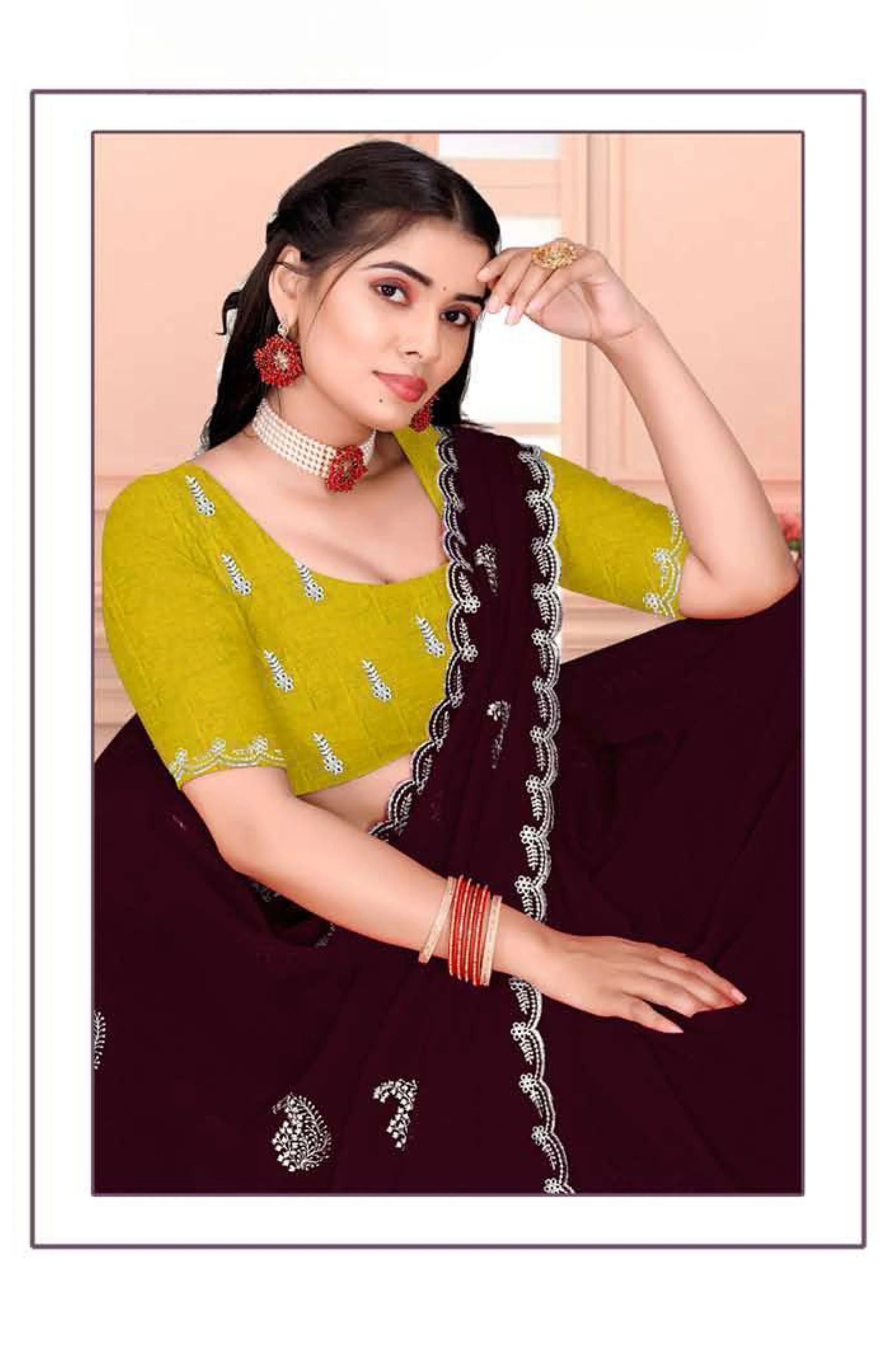 DYDE PLAIN SAREE WITH FANCY UN-STITCHED BLOUSE (259)